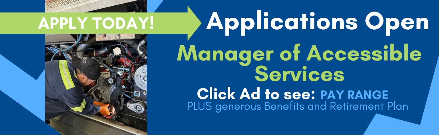We`re looking for a great person who will help look after our wonderful Senior and ADA passengers. Application, cover letter and resume will be accepted until 5:00 pm on Thursday, October 23rd.