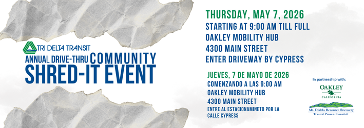 Shred-it will take place at the Oakley Mobility Hub, 4300 Main Street on Thursday, May 7th. Trucks will be there at 9:00 am. First come, first serve until trucks are full.